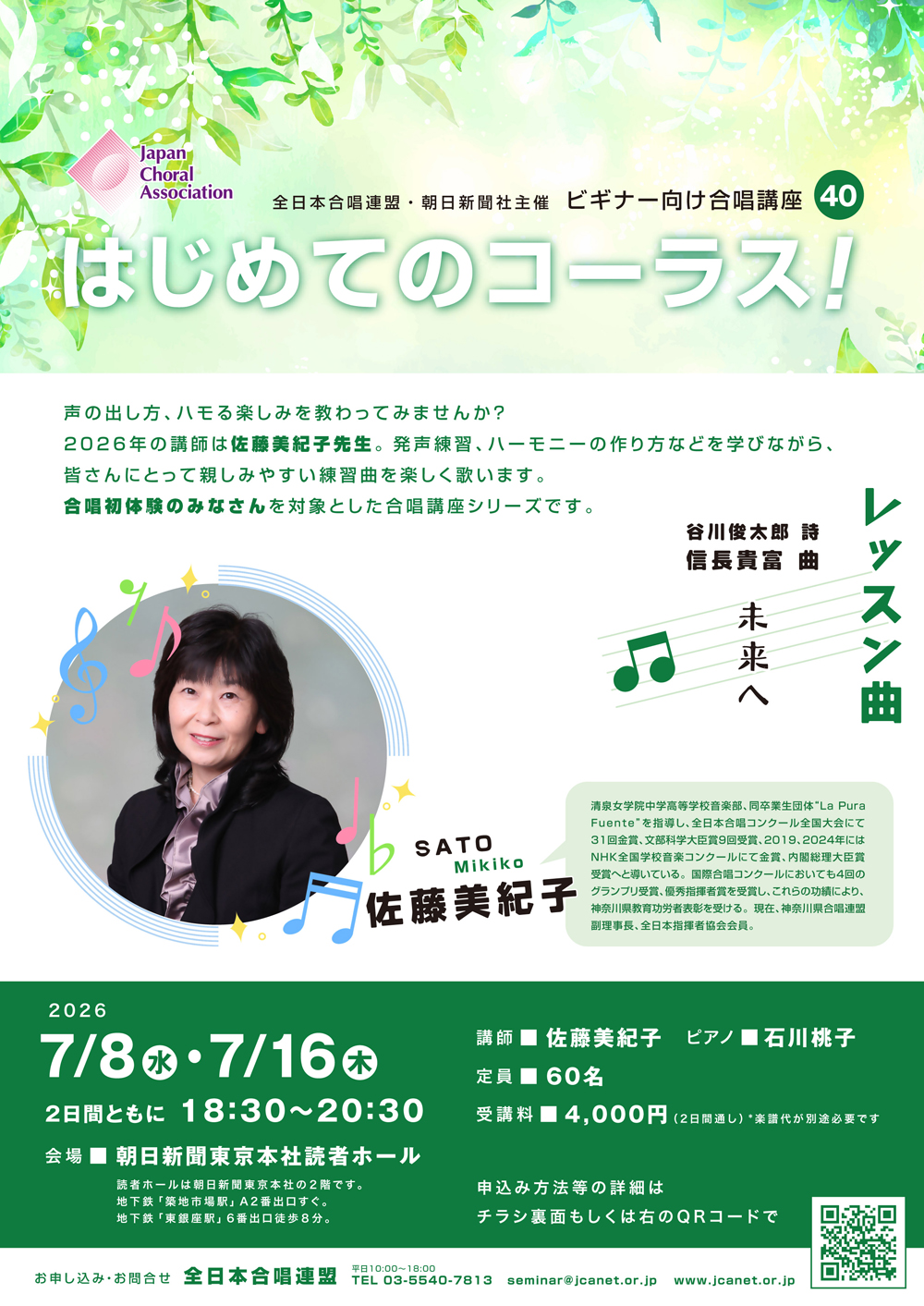 - 【合唱講座】「はじめてのコーラス!」9月開講 受付開始