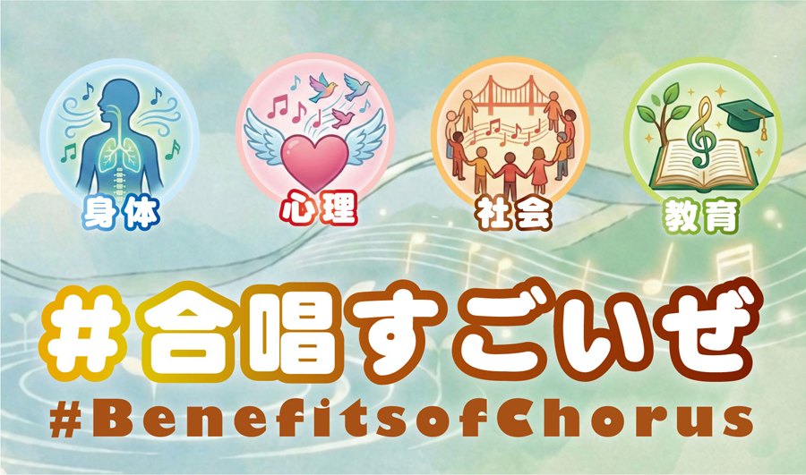 心身の健康や教育・社会性にとって、さまざまな効用があることが分かっています。科学的にも、感情的にも、合唱は私たちの毎日を豊かにしてくれる最強のメソッドです。