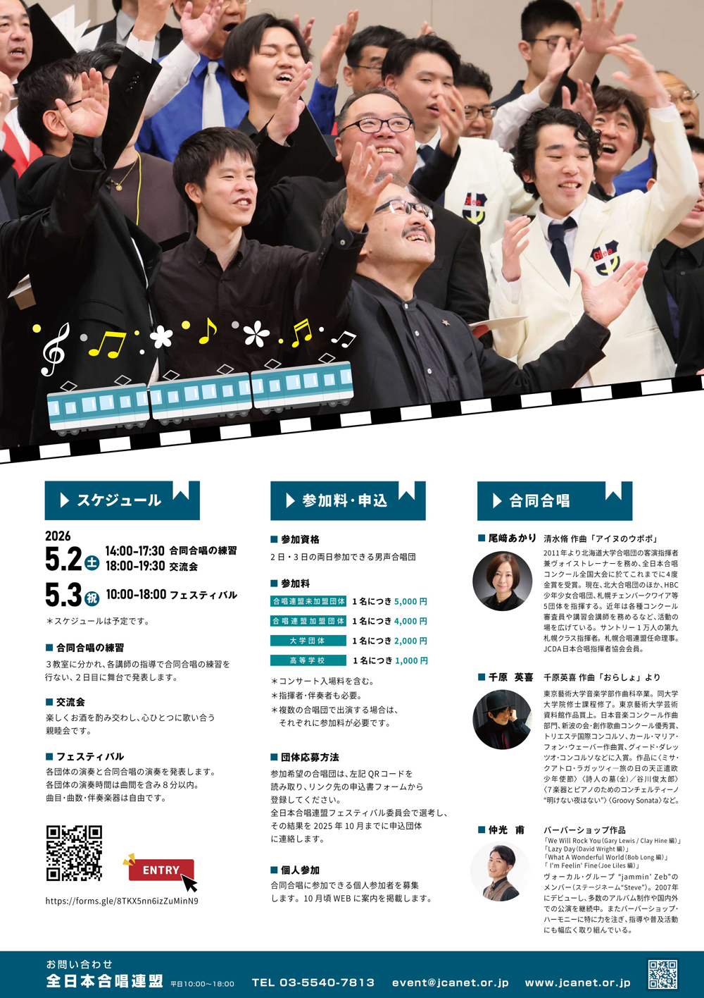 ■その他:全日本合唱連盟男声合唱委員会で選考し、その結果を2025年10月までに申込団体に連絡します。
